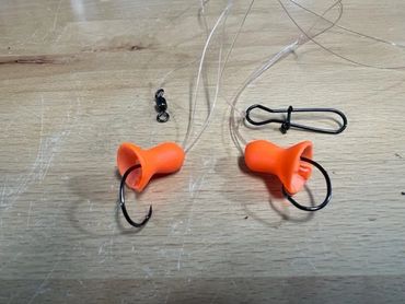 A custom designed and hand tied double dropper rig for targeting pompano, black and red drum, whiting (aka mullet, kingfish) in the surf. Add artificial bait and tip with fresh shrimp or sand flea for a killer rig.